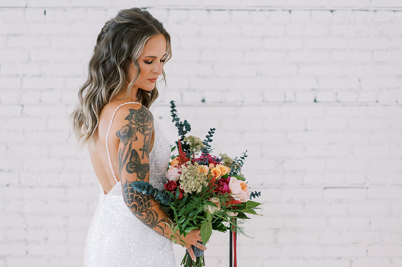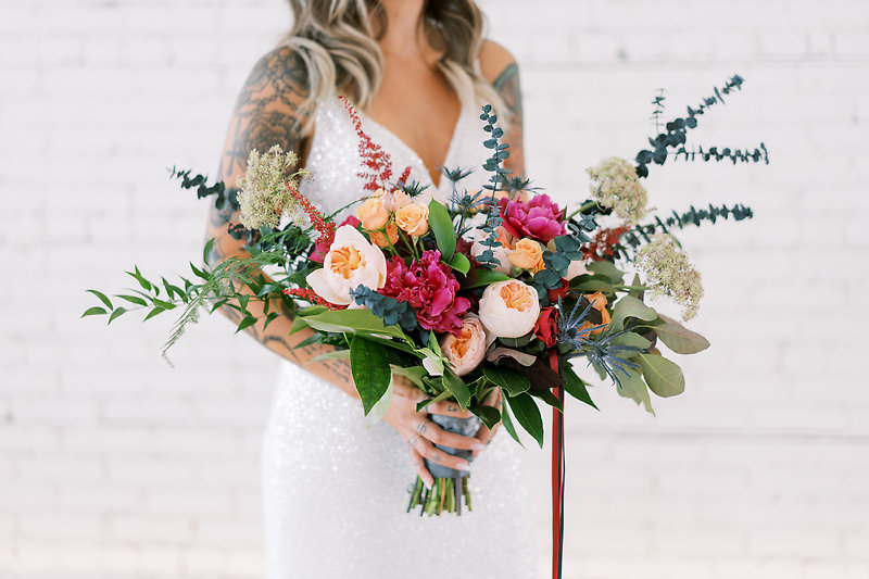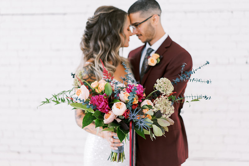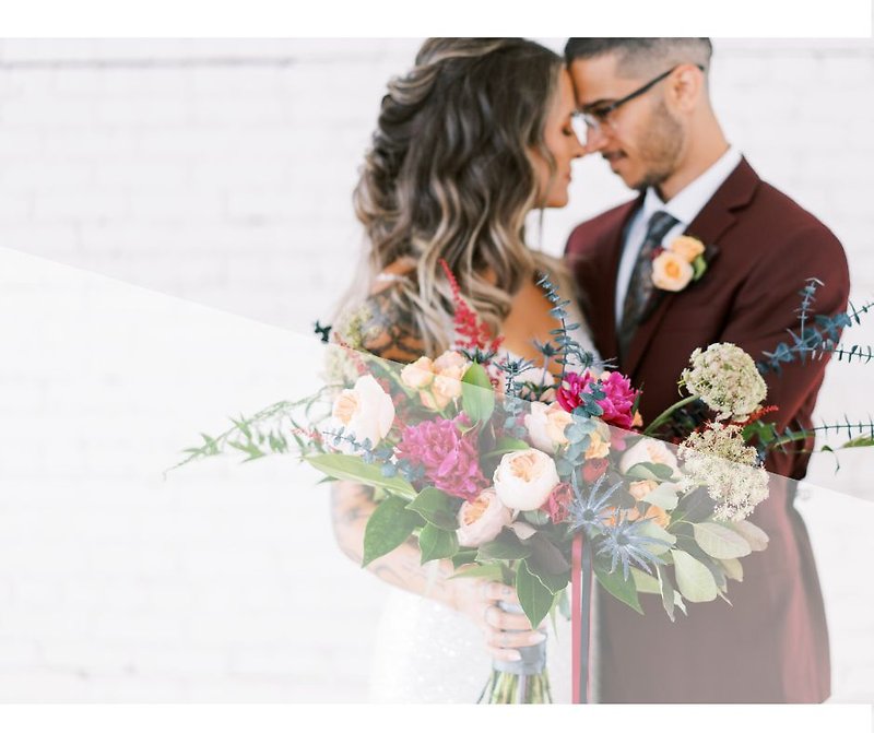 Wedding Photography Couple Portrait, Signature Modern Spring Bridal Bouquet